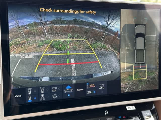 47. The Panoramic View Monitor does not provide a comprehensive view of the area surrounding your vehicle. Look around to confirm clearance. See Owner’s Manual for limitations.